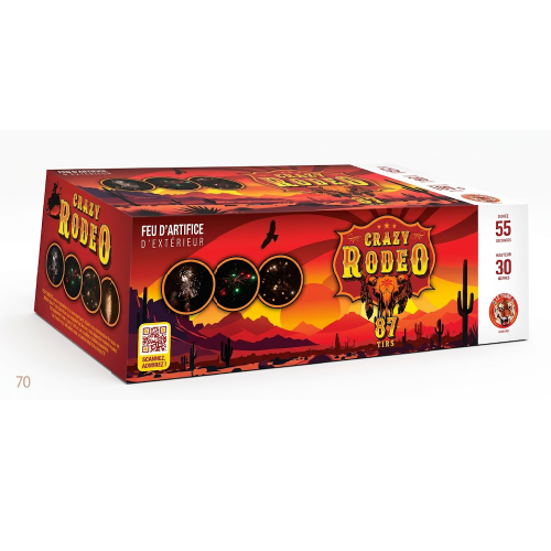 Un concentré de fête dans un format compact ! Le Crazy Rodéo 87 tirs est la solution parfaite pour ceux qui souhaitent un "mini spectacle" clé en main sans se ruiner. Ce produit combine ingénieusement 3 types d'artifices pour une expérience variée et rythmée.