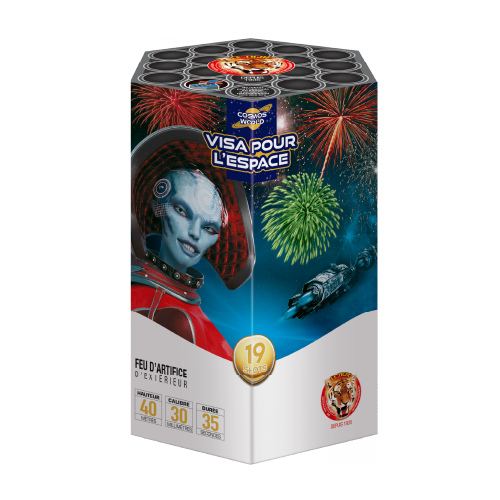 Préparez-vous pour une immersion intersidérale ! Le feu d'artifice Visa pour l'Espace 19 tirs est un concentré de technologie pyrotechnique. Malgré ses 19 coups, il offre une présence monumentale dans le ciel grâce à un calibre de 30 mm qui garantit des ouvertures massives et ultra-lumineuses.